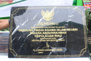 Penandatangan prasasti disaksikan oleh Gubernur Kepri Nurdin Basirun, Kepala Kantor Kemenag Kepri Mukhlisuddin, Ketua STAIN Sultan Abdurrahman Kepri Muhammad Faisal, dan tamu undanga lainya.